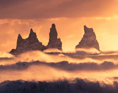 Хотите посвятить день Южному побережью Исландии? Прекрасно! Мы с радостью отправимся туда снова, чтобы вновь увидеть невероятные ландшафты и показать вам самые красивые места, что вы могли видеть и фотографировать. Южное побережье — это живописные водопады, бескрайние черные пески, величественные ледники, крутые утесы и дикие волны Атлантики. Однозначно, это один из самых живописных регионов Исландии для ландшафтной фотографии. Кроме того, в летнее время, кроме множества природных достопримечательностей, в объектив вашей камеры обязательно попадут знаменитые тупики — маленькие белогрудые птички с ярким желтым клювом, которые тысячами гнездятся на скалах мыса Дирхолаэй и пляжа Рейнисфьяра. По дороге к основным местам съемки нам повстречаются два самых известных вулкана Исландии. Сначала — Хекла, которая извергается так часто, что лаву из ее жерла в разные годы могли наблюдать, пожалуй все поколения исландцев, начиная от первопоселенцев. Часть маршрута экскурсии также пройдет вдоль подножия ледника Эйьяфьятлайёкютль, под шапкой которого в 2010 году извергался одноименный вулкан. Имя вулкана до сих пор никто не может произнести без запинки, но помнят его очень хорошо, особенно те, кому довелось провести не одну ночь в аэропорту во время извержения. Мы остановимся у подножия этого выдающегося ледника несколько раз, чтобы сделать яркие фотографии, но в первую очередь уделим внимание прекрасным водопадам: Сельяландсфосс и Скоугафосс. Если уж экскурсия имеет в названии Южное побережье, то мы обязательно побываем и на берегу, а точнее на одном из самых живописных пляжей Исландии — покрытом черным, как смоль, песком пляже Рейнисфьяра, где кроме шумных волн и бескрайнего океана сфотографируем внушительные базальтовые колонны и живописные прибрежные скалы. После привала в местечке Вик, мы повернем обратно в Рейкьявик, но прежде, чем доберемся до отеля, посетим еще одно выдающееся место — мыс Дирхолаэй, с которого открывается самый потрясный вид на океан и побережье. За одну фотоэкскурсию по Южному побережью вы соберете очень насыщенное портфолио самых разных природных достопримечательностей Исландии.